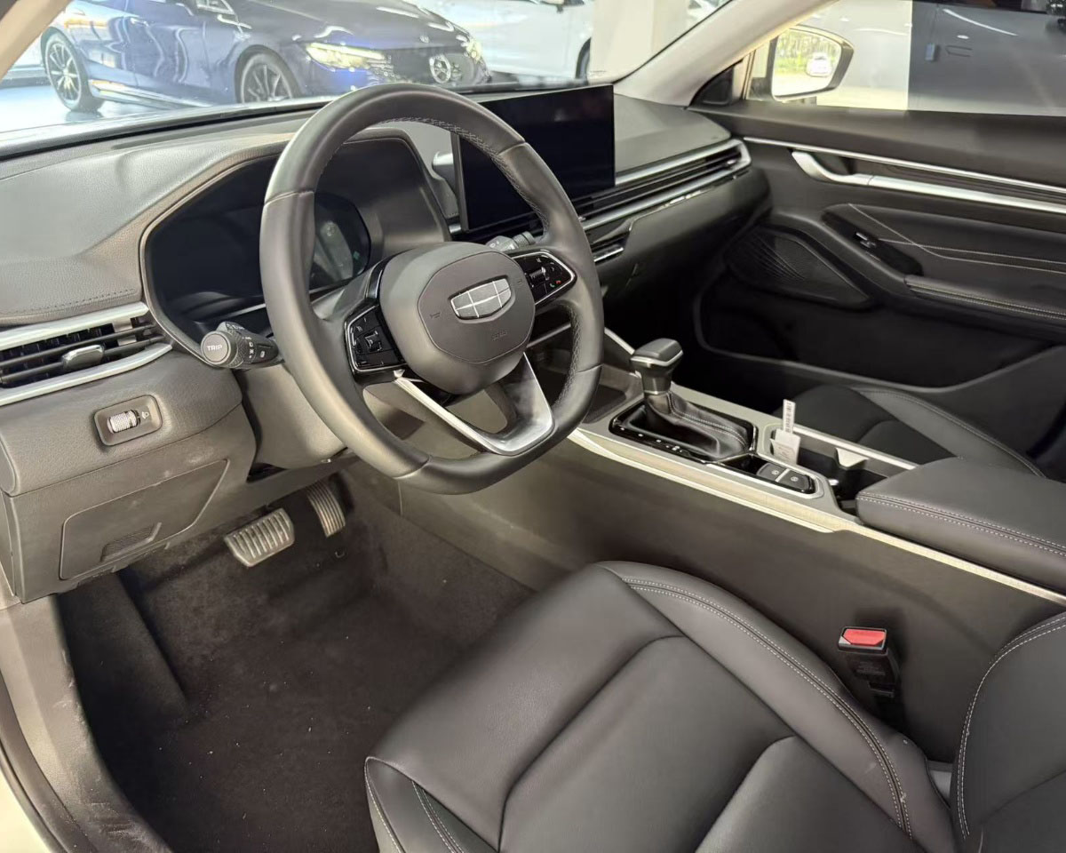Exterior Design: Featuring a flowing, waterfall-style front grille and a new silver logo, the overall design is stable, sophisticated, and stylish. Interior Features: The interior adopts an orange-themed design, equipped with a dual-screen setup and running Geely's Galaxy OS system, supporting voice recognition control, smartphone connectivity, and other functions.