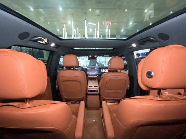 Comfort: Nappa leather seats (heated/ventilated/massage front seats), three-zone automatic climate control, and an onboard refrigerator (heating and cooling).