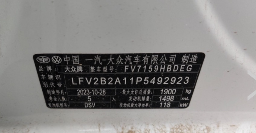 License plate registration date: November 2023